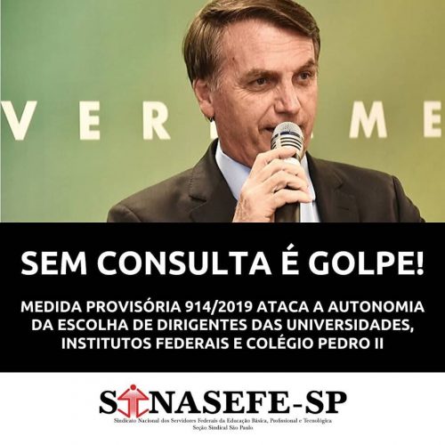 NOTA DO SINASEFE-SP SOBRE A MEDIDA PROVISÓRIA 914/2019 QUE ASSALTA A CONQUISTADA AUTONOMIA DA ESCOLHA DE DIRIGENTES DAS UNIVERSIDADES, INSTITUTOS FEDERAIS E COLÉGIO PEDRO II