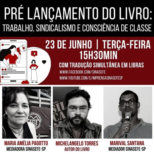 A transmissão será iniciada às 15h30min no Canal Imprensa Sinasefe-SP do Youtube e também diretamente na página do sindicato no Facebook:
