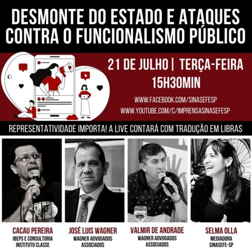 A transmissão será iniciada às 15h30min no Canal Imprensa Sinasefe-SP do Youtube e também diretamente na página do sindicato no Facebook:
