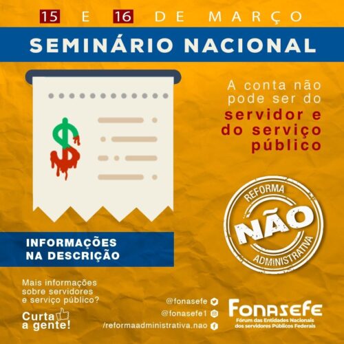 Participe do seminário nacional que vai unificar e organizar a luta dos servidores públicos contra a Reforma Administrativa, dias 15 e 16 de março.