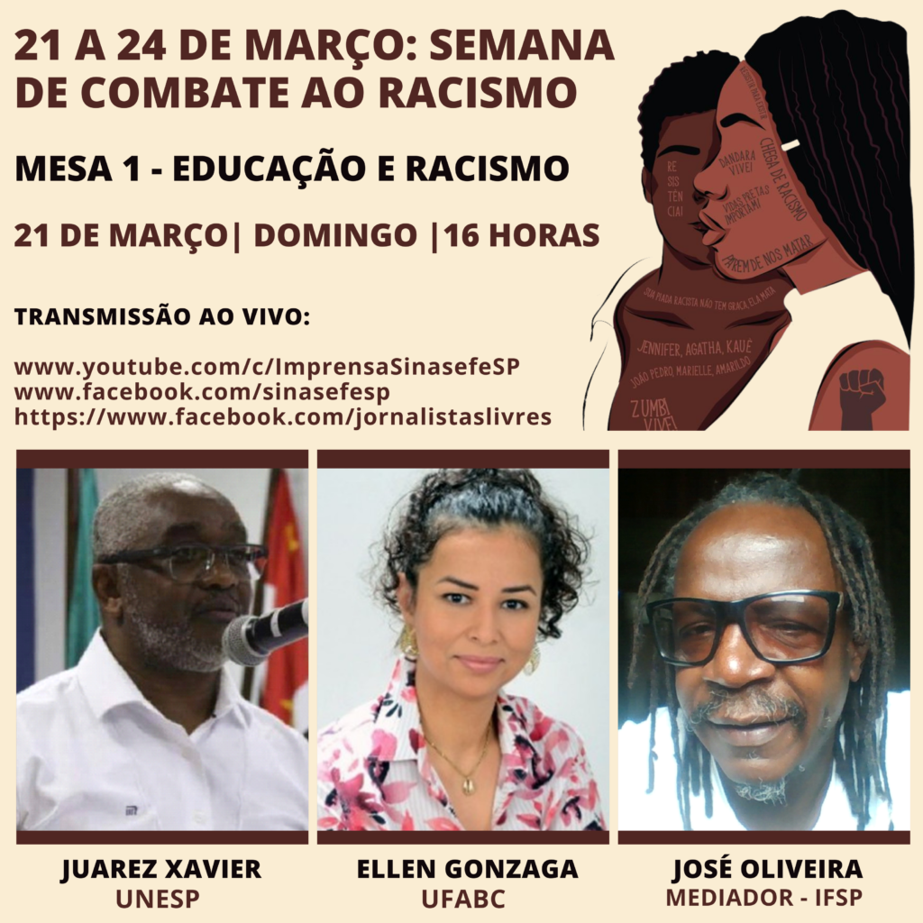 Confira o texto “Reflexões sobre 21 de março: Dia Internacional de Combate ao Racismo”, redigido pelo professor José Oliveira (IFSP), organizador do evento e mediador dos debates: