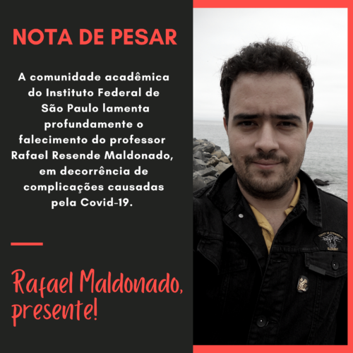 NOTA DE PESAR | A comunidade acadêmica do Instituto Federal de São Paulo lamenta profundamente o falecimento do professor Rafael Resende Maldonado, ocorrido neste sábado (03), em decorrência de complicações causadas pela Covid-19.