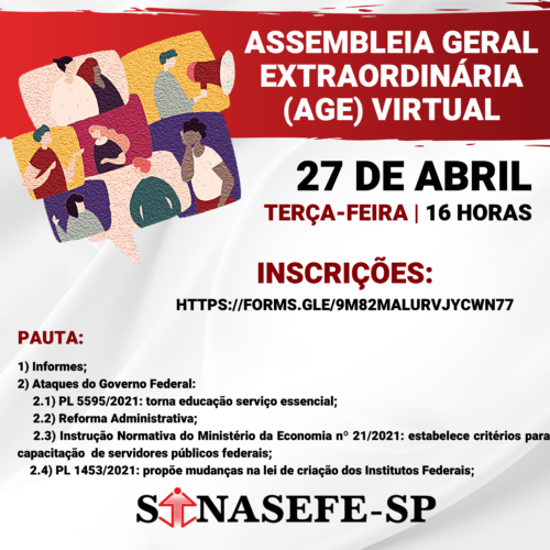 📢🚨 ATENÇÃO! DIA 27 DE ABRIL SERÃO REALIZADAS DUAS ASSEMBLEIAS VIRTUAIS: