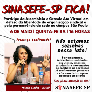 16 horas – ASSEMBLEIA E GRANDE ATO POLÍTICO – Em defesa da liberdade de organização sindical e pela permanência da sede no câmpus São Paulo!
