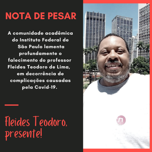 NOTA DE PESAR | A comunidade acadêmica do Instituto Federal de São Paulo lamenta profundamente o falecimento do professor Fleides Teodoro de Lima, ocorrido neste domingo (16), em decorrência de complicações causadas pela Covid-19.