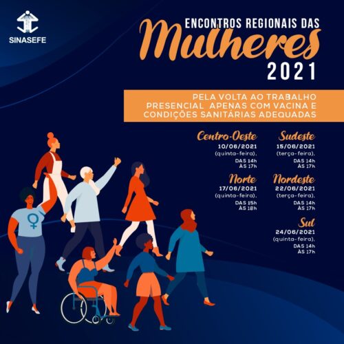 “Pela volta ao trabalho presencial apenas com vacina e condições sanitárias adequadas” este é o tema que norteará os Encontros Regionais das Mulheres 2021. Os eventos serão realizados virtualmente, via Zoom, entre os dias 10 e 24 de junho, sempre no período vespertino.