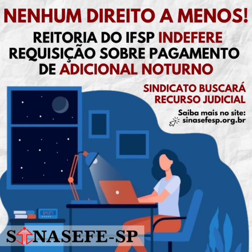 NENHUM DIREITO A MENOS! | Reitoria do IFSP indefere requisição sobre pagamento de adicional noturno. Sinasefe-SP buscará recurso judicial.