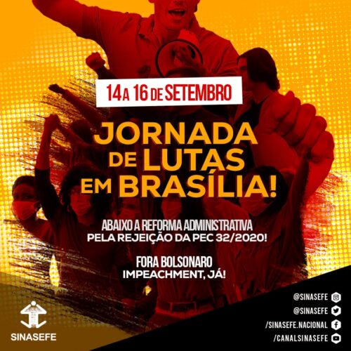 Em face dos esforços que estão sendo promovidos para evitar a aprovação da Reforma Administrativa, o Sinasefe Nacional e o Fonasefe convocaram suas bases para comparecerem à Jornada de Lutas de 14 a 16/09. A atividade tem como foco promover grandes manifestações em defesa dos serviços públicos e dos trabalhadores que atuam no funcionalismo.