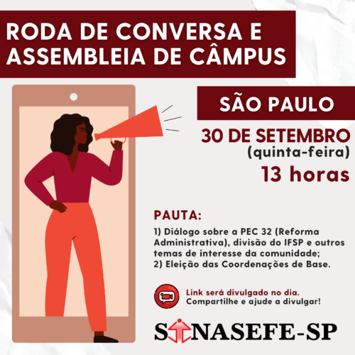 1) Diálogo sobre a PEC 32 (Reforma Administrativa), divisão do IFSP e outros temas de interesse da comunidade;