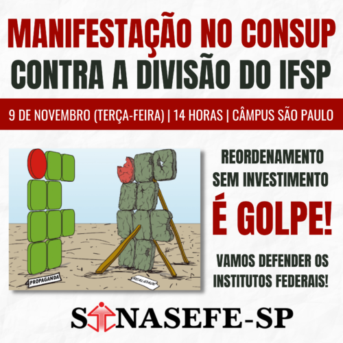 Diante da desinformação, ansiedade e apreensão jurídica, o Sinasefe-SP realizou uma enquete para a comunidade interna opinar sobre o tema, além de plenárias, lives e constante diálogo com parlamentares. Agora é hora de irmos além, vamos mobilizar todas as nossas forças para realizar um grande ato na reunião do Consup agendada para o dia 9 de novembro. Vamos todas, todos e todes levantar a voz contra o desmonte da nossa Instituição!