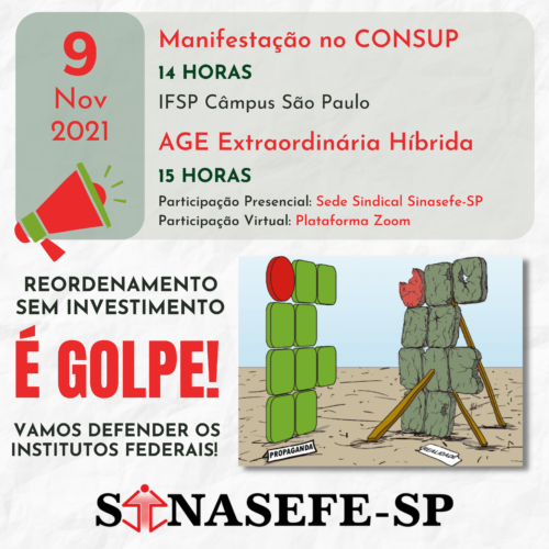 9 DE NOVEMBRO: MANIFESTAÇÃO NO CONSUP CONTRA A DIVISÃO DO IFSP E ASSEMBLEIA GERAL EXTRAORDINÁRIA (AGE) HÍBRIDA