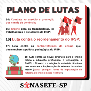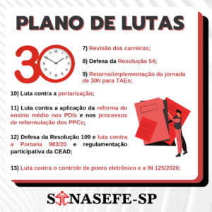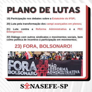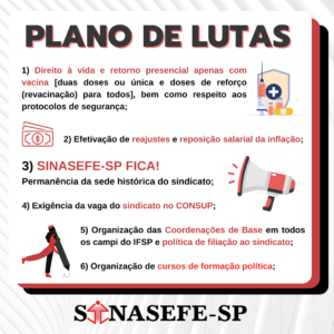 PLENA ESTADUAL E PLANO DE LUTAS | A reunião da II PLENA das Coordenações de Base do Sinasefe-SP, realizada virtualmente dia 27 de novembro, aprovou um Plano de Lutas que será submetido à Assembleia Geral em março de 2022; confira e colabore com as elaborações do sindicato!