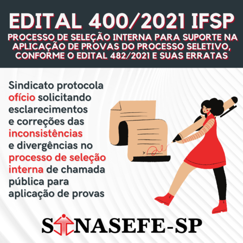 A Coordenação Funcional do Sinasefe-SP foi acionada por alguns servidores do IFSP, tendo em vista que, conforme relatos dos mesmos, existem inconsistências e disparidades no processo de seleção interna para suporte na aplicação de provas conforme o edital 482/2021 e suas erratas.