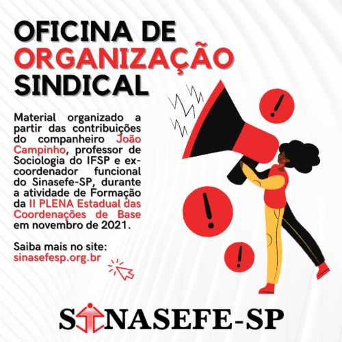 OFICINA DE ORGANIZAÇÃO SINDICAL | Material organizado a partir das contribuições do companheiro João Campinho, professor de Sociologia do IFSP e ex-coordenador funcional do Sinasefe-SP, durante a atividade de Formação da II PLENA Estadual das Coordenações de Base em novembro de 2021.