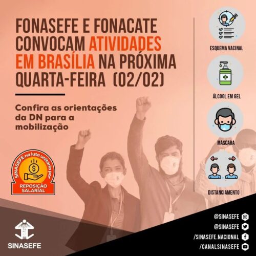 A Direção Nacional do SINASEFE informa, nesta terça-feira (25/01), que Fonasefe e Fonacate, conjuntamente, enviaram solicitações de audiências com os responsáveis pelos três poderes na próxima quarta-feira (02/02). Diante das perdas acumuladas, o objetivo das audiências será de encaminhar as demandas da campanha salarial emergencial dos Servidores Públicos Federais.