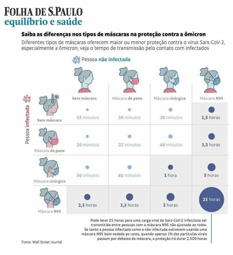 A Folha de São Paulo divulgou infográfico sobre a eficácia das máscaras e respiradores: