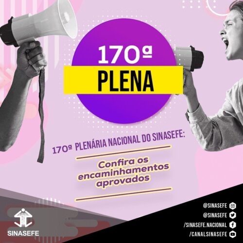 170ª PLENA NACIONAL DO SINASEFE | Confira, na íntegra, os encaminhamentos aprovados na Plena realizada nos dias 19 e 20 de fevereiro. Dentre os temas deliberados estão Estado de Greve, a realização do Encontro de Mulheres, o próximo Congresso da entidade (com caráter eleitoral), o retorno presencial e as lutas da categoria.