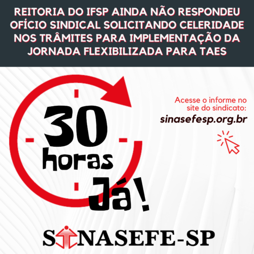 EM DEFESA DAS 30 HORAS | Reitoria do IFSP ainda não respondeu ofício sindical solicitando celeridade nos trâmites para usufruto da jornada flexibilizada dos trabalhadores técnico-administrativos do IFSP