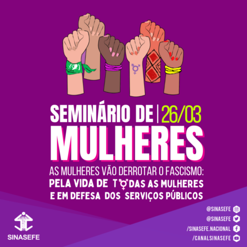 “As mulheres vão derrotar o fascismo: pela vida de todas as mulheres e em defesa dos serviços públicos” será o tema do evento, que realizará balanço dos Encontros realizados em 2018 e 2019. A construção do 3º Encontro de Mulheres do Sinasefe, agendado para 18 a 20 de junho de 2022 , também será pauta do seminário.