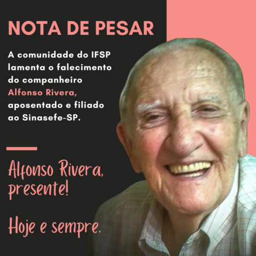 Os familiares e amigos do companheiro Alfonso Rivera convidam a comunidade acadêmica do Instituto Federal de São Paulo para a Missa de Sétimo Dia em homenagem ao professor.
