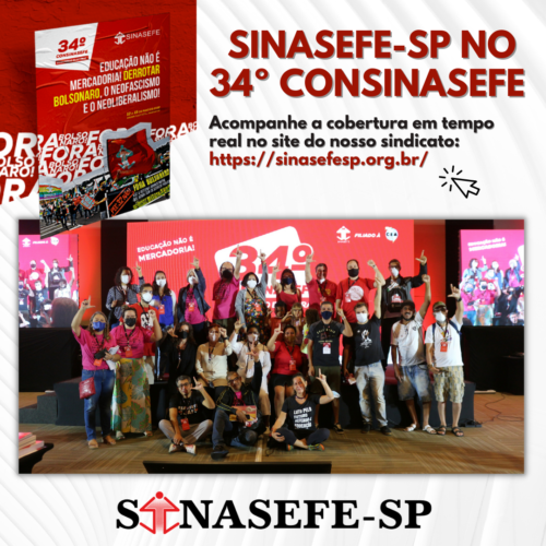 O 34º Congresso do SINASEFE será eleitoral e vai definir a Direção Nacional (DN), o Conselho Fiscal e o Conselho de Ética do sindicato para o biênio 2022-2024. O evento terá como temário “Educação não é mercadoria! Derrotar Bolsonaro, o neofascismo e o neoliberalismo”, indicando que o norteamento do evento será o de organizar a categoria para que o mandato de Bolsonaro termine no menor tempo possível, no que depender da nossa luta.