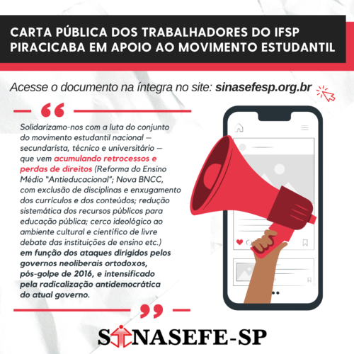 PIRACICABA | Carta Pública dos trabalhadores do IFSP Piracicaba em apoio ao Movimento Estudantil