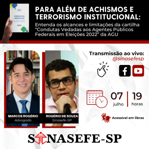 LIVE SINASEFE-SP | Para além de achismos e terrorismo institucional: entenda os alcances e limitações da cartilha “Condutas Vedadas aos Agentes Públicos Federais em Eleições 2022” da AGU