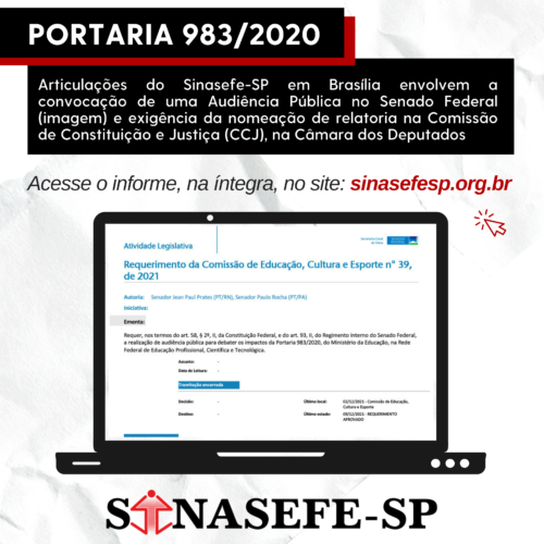 Paralelamente às articulações na Câmara dos Deputados, o sindicato dialogou com representantes do Senado Federal. O gabinete do senador Jean Paul Prates (PT-RN) comprometeu-se em agendar, para agosto, uma Audiência Pública para discutir as implicações da Portaria 983/2020.