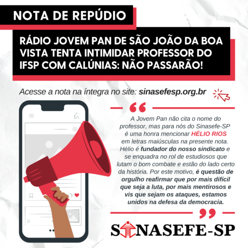 NOTA DE REPÚDIO | JOVEM PAN DE SÃO JOÃO DA BOA VISTA TENTA INTIMIDAR PROFESSOR DO IFSP COM CALÚNIAS, NÃO PASSARÃO!