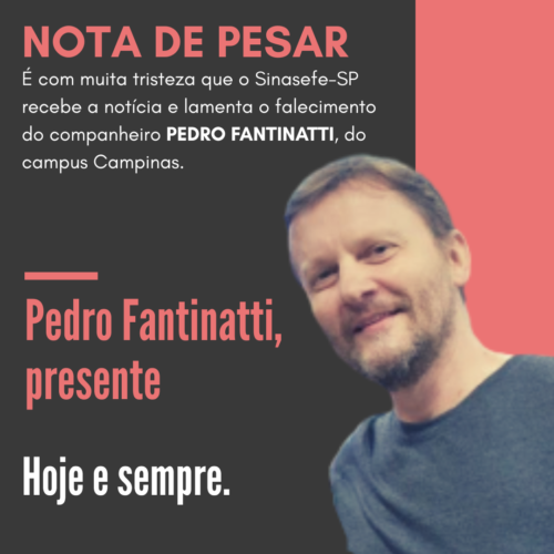 “Em 2013 nos conhecemos trabalhando na Comissão Central na elaboração da Resolução 112. Nesta comissão, o professor Pedro num primeiro momento participou como representante do Campus Caraguatatuba e, posteriormente, como representante do SINASEFE. Trouxe contribuições inestimáveis na construção de tal documento, sempre na perspectiva da defesa de melhores condições de trabalho no IFSP. Faço questão de ressaltar que, se hoje temos a possibilidade de contabilizar em nossa carga horária as atividades sindicais, devemos reconhecer o trabalho feito pelo Pedro. Consigo me lembrar exatamente do momento em que o professor Fantinatti trouxe e exigiu a inserção dessa demanda no texto da resolução que iria em breve passar pela consulta da comunidade. Além dessas inestimáveis contribuições, nosso companheiro Pedro também foi membro do Conselho Superior e da Comissão Permanente de Pessoal Docente (CPPD). Lamento demais a partida desse amigo e companheiro de luta que o IFSP me deu. Foi um grande companheiro, merece uma linda homenagem. Quem o conheceu está tomado de muita tristeza e emoção.”