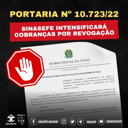 Caso a referida Portaria ainda esteja em vigência na semana que vem, levaremos essa pauta da revogação como um dos nossos pedidos prioritários à Mesa de Negociação Permanente, que será inaugurada com o MGI, em Brasília-DF, no dia 07/02.