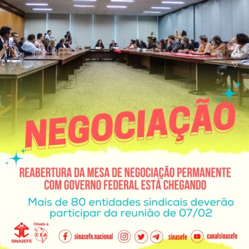 Essa primeira reunião, em 07/02, contará com as participações das entidades do Fonacate e do Fonasefe. O SINASEFE participará da mesa como entidade do Fonasefe – Fórum onde nosso sindicato tem sido uma das entidades protagonistas em sua composição e organização. Cerca de 80 entidades representativas dos servidores federais são esperadas para o evento de abertura da mesa.