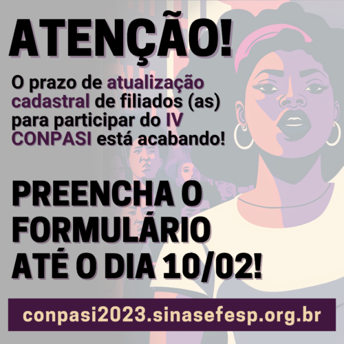 ATENÇÃO! O prazo de atualização cadastral de filiados (as) para participar do IV CONPASI está acabando!