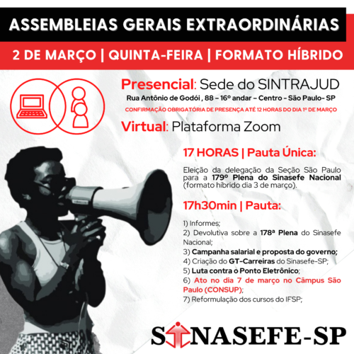 Eleição da delegação da Seção São Paulo para a 179º Plena do Sinasefe Nacional (formato híbrido dia 3 de março).