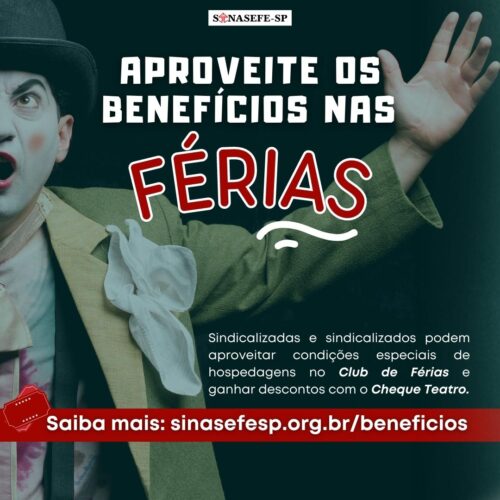 As férias de julho chegaram e com elas, a oportunidade para aproveitar os benefícios que o Sinasefe-SP disponibiliza. Sindicalizadas(os) têm direito a ingressos com descontos em teatros na cidade de São Paulo e condições especiais de hospedagens no Club de Férias.