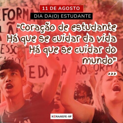 Neste dia das e dos estudantes (11), marcado por atos em diversas cidades do país, reafirmamos o nosso compromisso com a defesa da Educação Pública. Estamos com as e os estudantes nas lutas contra os cortes de verbas, por 10% do PIB e pela revogação do excludente e alienante Novo Ensino Médio (NEM).