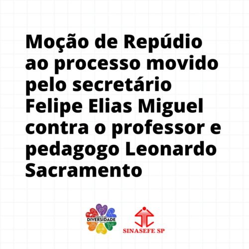 Manifestamos todo nosso apoio ao professor da rede municipal de Ribeirão Preto e TAE (pedagogo) no IFSP-Sertãozinho Leonardo Sacramento e repudiamos qualquer ato político que impeça a concretização de uma educação pública, de qualidade e socialmente referenciada.