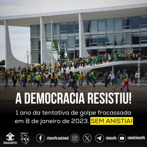 O SINASEFE foi o primeiro sindicato nacional a se posicionar contra a tentativa de Golpe de Estado da extrema-direita de 08/01/2023, tendo feito isso na mesma data, ainda quando a PM do Distrito Federal, já sob a intervenção do Governo Federal, subia a Via N1 da Esplanada dos Ministérios rumo ao Setor Militar Urbano, para efetuar a prisão de quase dois mil golpistas que fugiram para a Praça dos Cristais, na tentativa de buscar impunidade para os atos de bárbarie que foram realizados.