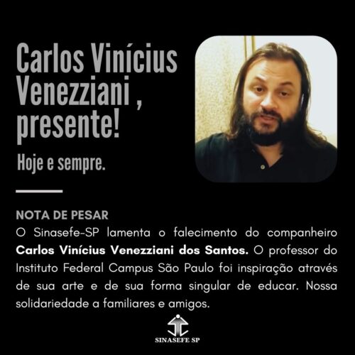 Com imenso pesar, recebemos a informação do falecimento do professor do Instituto Federal de São Paulo, Campus São Paulo, Carlos Vinícius Venezziani dos Santos.
