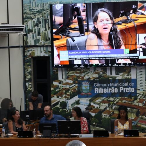 A mesa composta para essa audiência teve como participantes Claudio Henrique Bauso, arquiteto membro do Conselho Municipal do Patrimônio Artístico e Cultural de Ribeirão Preto (COPAC), Dione Cabral, coordenadora na Seção São Paulo do SINASEFE e assistente social no IFSP Araraquara, o professor do IFSP Catanduva Ricardo Gimenez, que realiza a articulação da Frente pelo IF Ribeirão Preto, a vereadora Duda Hidalgo (PT), que tem encabeçado a articulação para a criação do IF em Ribeirão Preto, a egressa do IFSP Sertãozinho Camila Lima Rosa, que atualmente é professora da rede em Ribeirão, o diretor do campus Sertãozinho Paulo Sergio Calefi, representando o reitor Silmário Batista dos Santos.