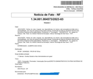9. Abril/23: Interrupção da obra de construção do sindicato após denúncias anônimas. Diretor do Campus São Paulo denuncia a obra do sindicato no Ministério Público Federal.