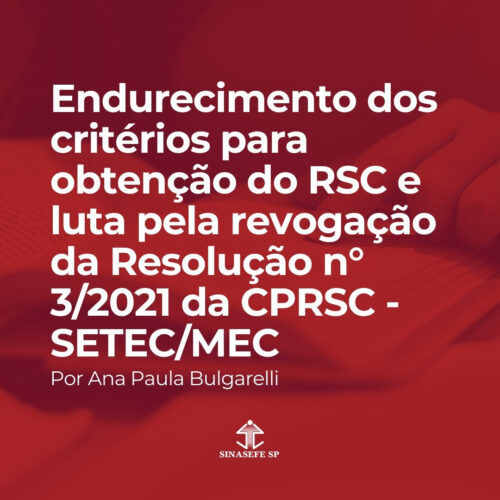Apesar de estar em vigor desde dezembro de 2022, muitos servidores ainda não sabem que o direito ao RSC foi restringido (ou praticamente inviabilizado no caso dos docentes que já o obtiveram anteriormente) com a criação da Resolução n° 12/2022 do IFSP. O problema, todavia, não está nesta resolução em si, mas na normativa federal que a orienta, a saber, na Resolução n° 3/2021, criada pelo Conselho Permanente para Reconhecimentos e Saberes e Competências (CPRSC), da SETEC-MEC, aprovada durante a gestão do governo Bolsonaro. Dentre as inovações dessas duas resoluções, praticamente idênticas em teor, inúmeros obstáculos foram criados no intuito deliberado de restringir ou inviabilizar a concessão do direito ao RSC, previsto no caput do art. 18 da Lei 12.772/2012. Só para citar os dificultadores mais flagrantes, agora há a necessidade de o docente obter três pareceres favoráveis (dentre quatro) para que seu processo seja aprovado pela comissão especial, responsável pela avaliação e concessão do RSC; elas também não reconhecem mais, para fins de pontuação, as titulações e certificações utilizadas na obtenção de um RSC anterior; impõem a necessidade da observância de um interstício de três anos, a contar da data da concessão do último RSC obtido, para que o docente possa começar a pontuar novamente; anulam a pontuação de titulações e certificações obtidas no período que ultrapasse os cinco anos anteriores ao ingresso do docente no IFSP; condicionam como marco inicial para a produção de efeitos financeiros decorrentes da obtenção do RSC a data de sua concessão pelo IFE, e não mais a data da obtenção da titulação; aumentam a pontuação mínima para a concessão do direito para 60 (antes era 50), além de vários outros pontos.