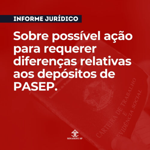 A assessoria jurídica do SINASEFE-SP elaborou documento com informações importantes sobre possível pretensão de reparação, na via judicial, de diferenças relativas aos depósitos de PASEP. A nota informativa destaca que “não há decisão definitiva quanto ao direito dos servidores de terem referidos valores devolvidos”.