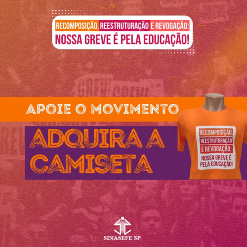 O SINASEFE-SP está vendendo camisetas de apoio ao movimento paredista como uma forma de ampliar as receitas geradas para financiar as diversas atividades de mobilização que estão sendo realizadas, para além daquelas do cotidiano do sindicato.