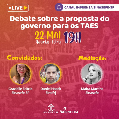 A live será nesta quarta-feira (22.05), às 19h. Com transmissão pelo Canal Imprensa Sinasefe-SP.