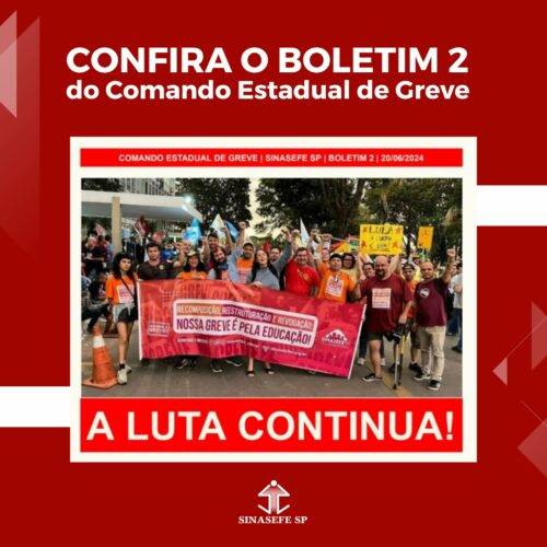 A Greve Federal da Educação continua e os próximos dias serão decisivos. Nesta sexta e sábado, a 193ª Plenária Nacional do Sinasefe vai analisar as propostas do governo e definir sobre os rumos do movimento. Esse é um dos assuntos abordados no Boletim 2 do Comando Estadual de Greve do Sinasefe Seção São Paulo.