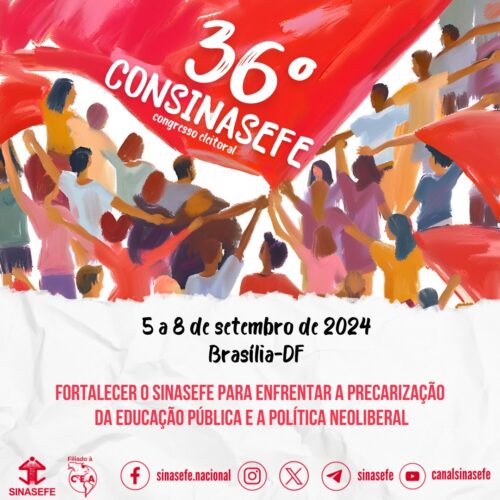 O sindicato realizará, de 5 a 8 de setembro de 2024, o 36º Congresso do SINASEFE (CONSINASEFE), que terá como tema “Fortalecer o SINASEFE para Enfrentar a Precarização da Educação Pública e a Política Neoliberal”.