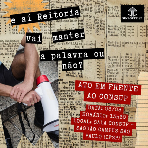 📢 SINASEFE SP CONVOCA: ATO EM FRENTE AO CONSUP! 📢