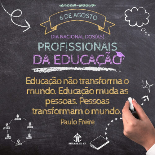 “Educação não transforma o mundo. Educação muda as pessoas. Pessoas transformam o mundo”. Com as palavras de Paulo Freire celebramos mais um dia de luta!