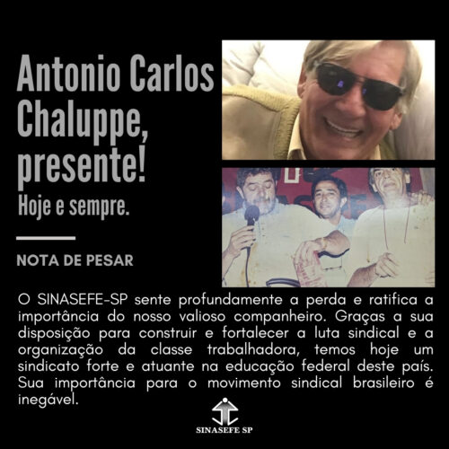 Hoje nos despedimos do nosso grande companheiro Antonio Carlos Chaluppe. Com sua energia ativa e dedicação à luta sindical, foi um dos fundadores de um dos maiores sindicatos de Educação do país, o SINASEFE.